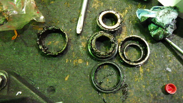 ベアリングは鉄粉が大量に付着しています。