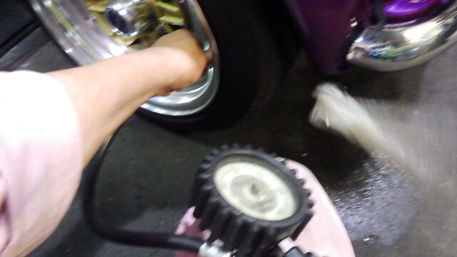 キャンバー調整の前にタイヤの空気圧を揃えます。