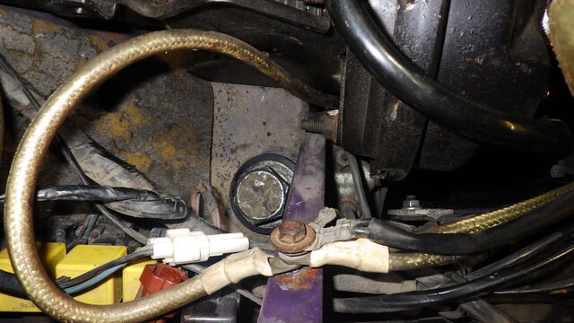 左側は燃料タンクが邪魔して見えませんし、手も工具も入りません。