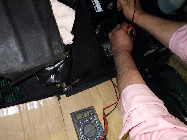 車にバッテリーを積み込んだら、暗電流の確認を行います。