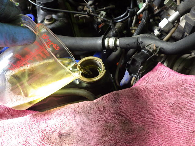 エンジンオイルを注入します。