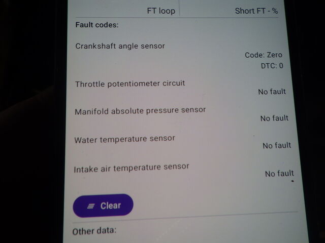 カジモニチェックは一番上のクランクセンサーにフォルト(DTC:16)入っていました。