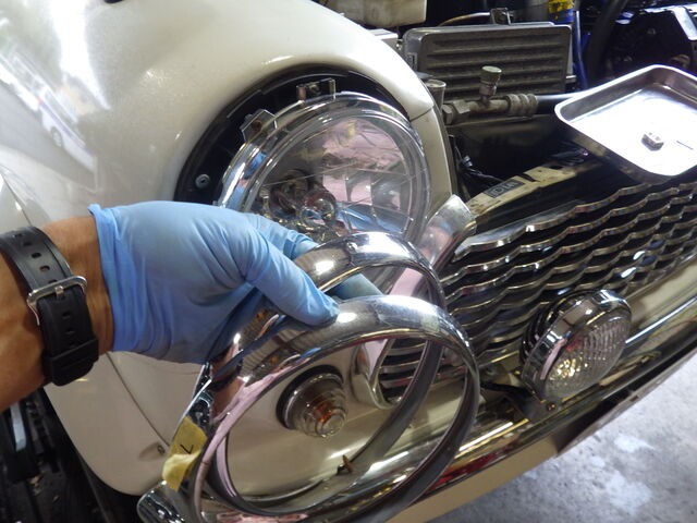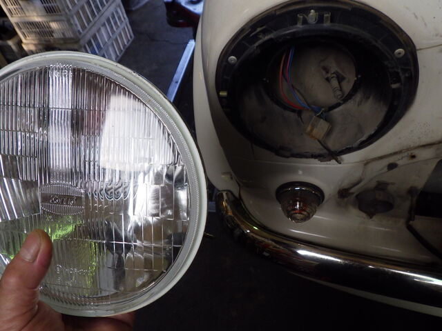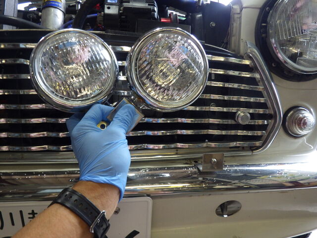 ヘッドライトを車検対応品に交換します。