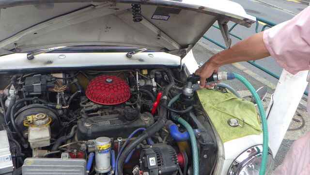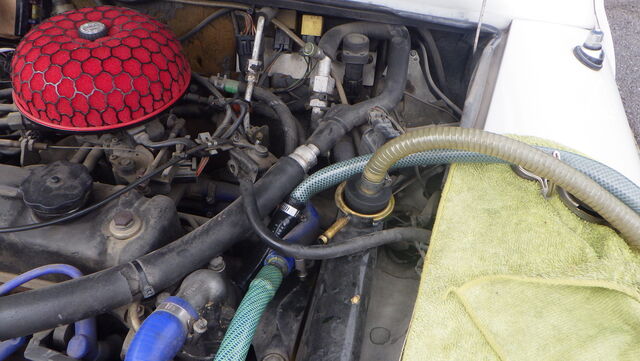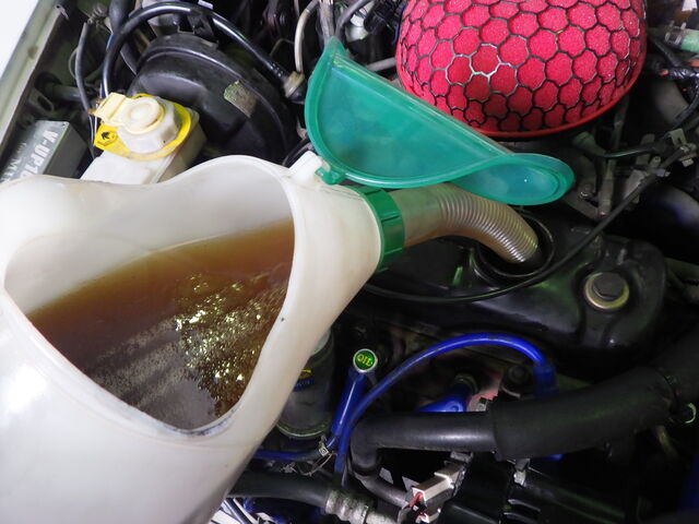 ラジエターフラッシュ入れてエンジン始動で洗浄開始