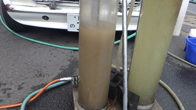 次は汚れが滞留しやすいヒーターコアからも逆流で吸い出します