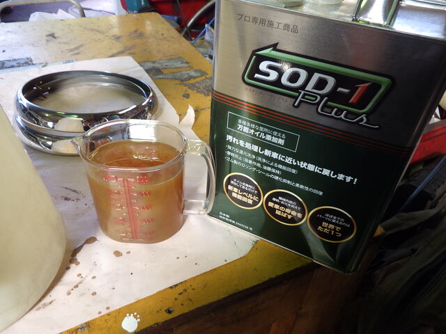エンジンオイルにSOD-1を添加します。