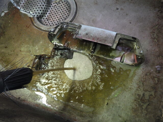 腐食している部分や錆、汚れが激しい所はワイヤーホイールで磨きます。