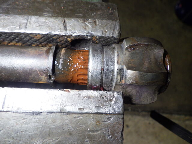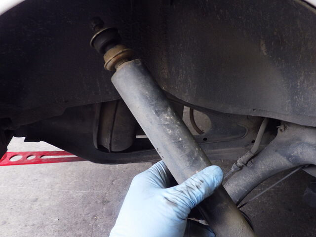 古い方のショックアブソーバーを外して