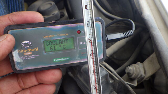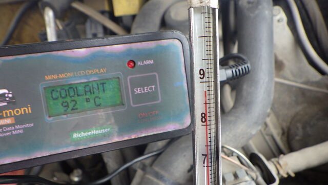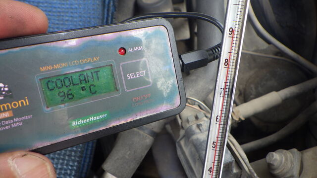 エンジン側の水温センサーとラジエターに挿した温度計に差があればサーモスタットが密閉してるのですが・・・ 同じ温度です