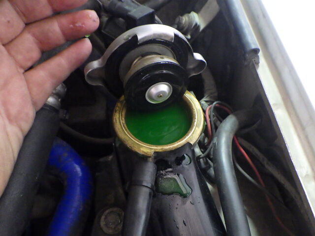 ラジエターキャップを開けると口まで冷却水がきてるのでリザーブタンクはしっかり機能してますね