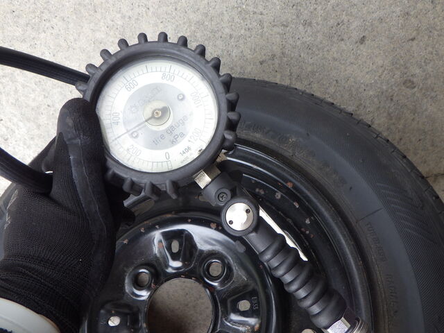 スペアタイヤに空気充填しておきました。