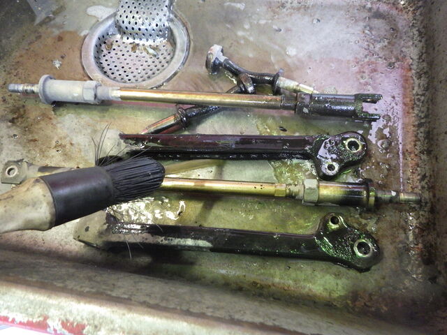 ロワアームとロワアームシャフト、テンションロッドを洗浄します。