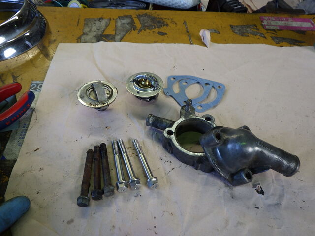 サーモスタット、ガスケット、ボルト新旧交代の儀。