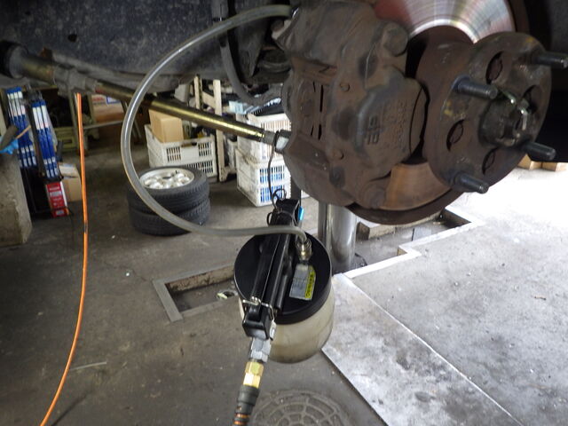 ブレーキパイプラインのエア抜きをします。