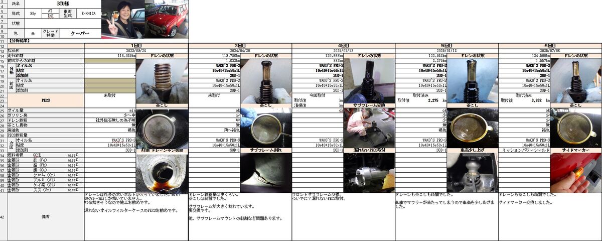 今回もオイルカルテに写真付きで追記しておきます(`・ω・´)ゞ