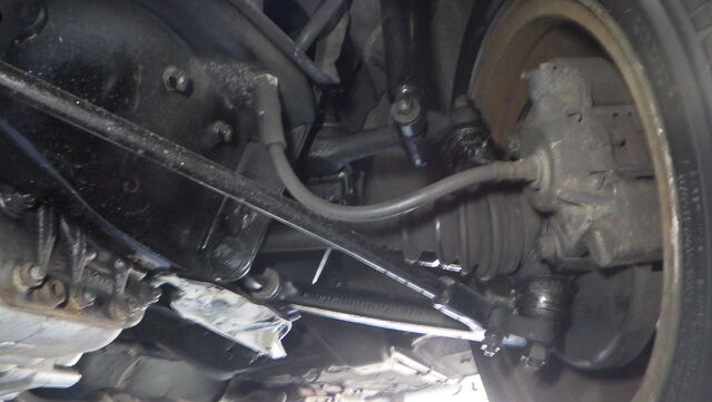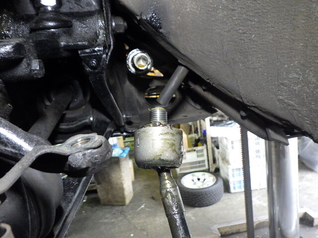 左のタイロッドを上下に揺らすとコトコトと音と振動がありました。