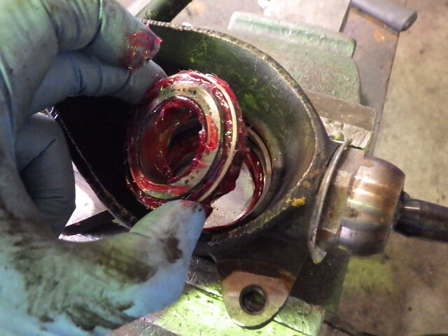 アウターレースを打ち込んだスイベルハブにベアリングを入れます。