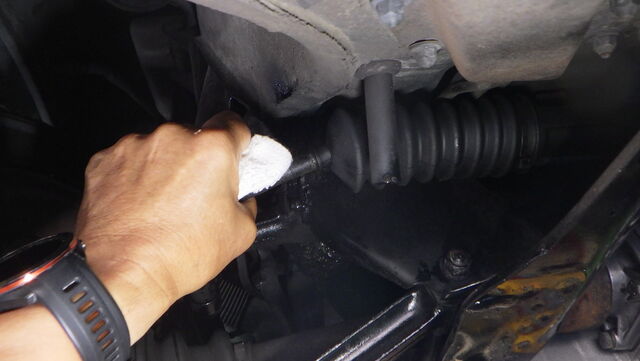タイロッドにグリスを塗りこんで組み付けます。
