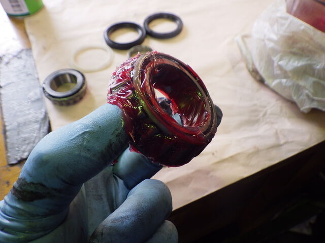 洗浄したスイベルハブにベアリングを組み付けていきます。