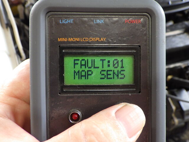 ・MAP SENS - マニホールド絶対圧力(MAP)センサーのフォルトコード。センサー部品が壊れているというよりも、バキュームパイプのコネクタの破損や接続不良により負圧が異常な値となっている時がほどんどです。