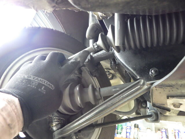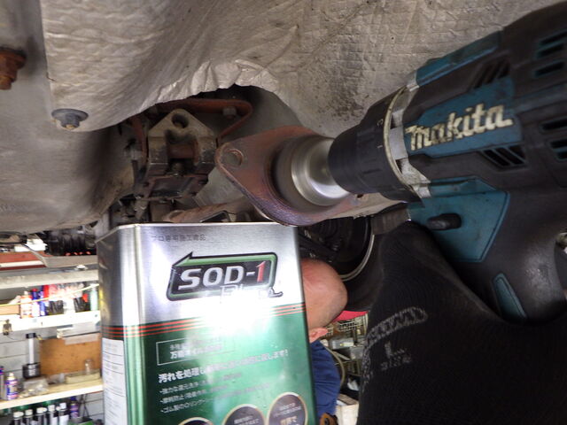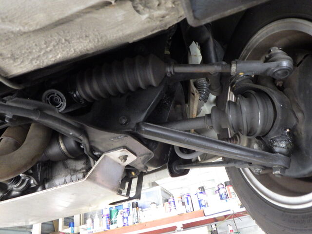右のドライブシャフトインナーブーツが少し湿って見えます。