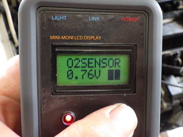 O2 SENSOR - O2センサーの電圧およびその状態を表示。アイドリング時は0.4V以下(リーン)~0.6V以上(リッチ)を常に上下しています。
