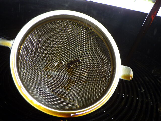 茶こしには謎の物体が。
