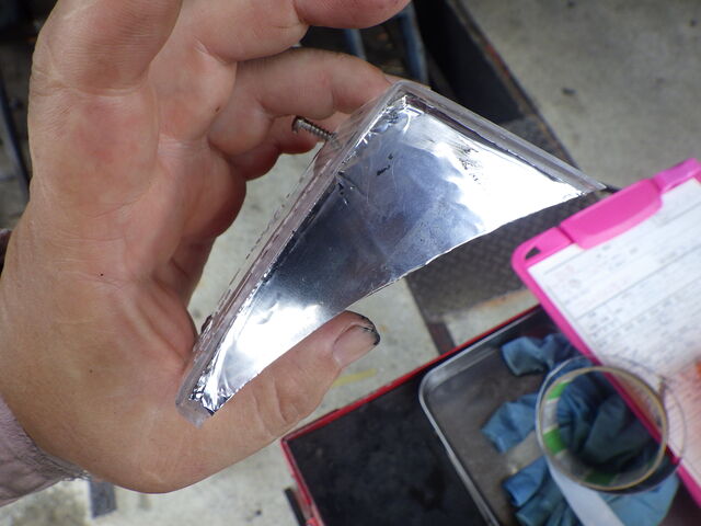 リバースランプとストップランプの間に遮光板が無かったので金属テープでふさいでおきました。