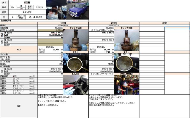 飛び飛びになっていますがオイルカルテも写真付きで追記しておきました(`・ω・´)ゞ