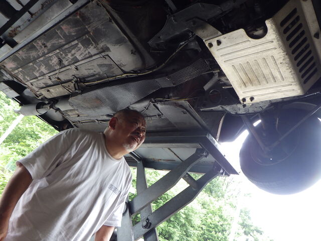 フロア下も真ん中過ぎくらいまでオイルが付いています。