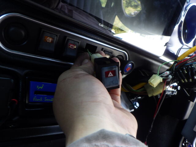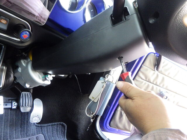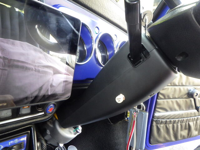 コラムカバーに穴をあけてスイッチ固定と配線割り込ませ。