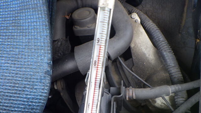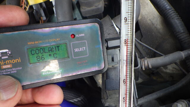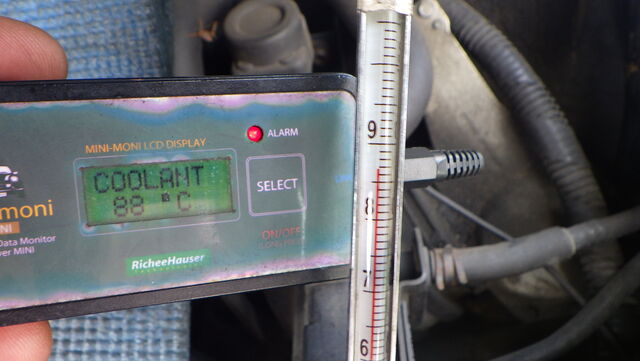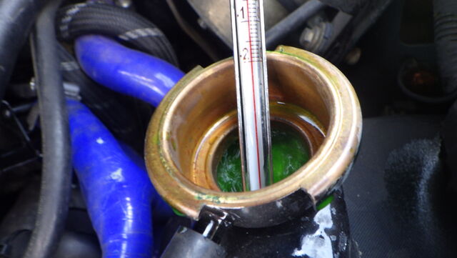 エンジン側の水温センサーは61℃まで上昇しましたがラジエターに挿した温度計は35℃をキープ