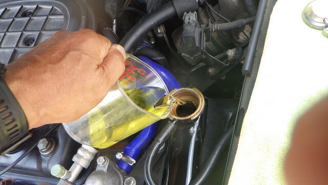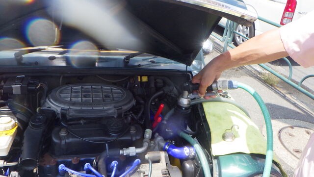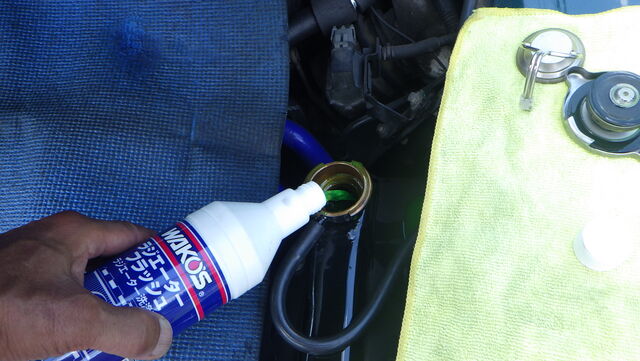 ラジエターフラッシュ入れてエンジン始動で洗浄開始