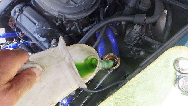 一気にLLCを流し込みましたがラジエターの状態がよく一気飲みしてくれました