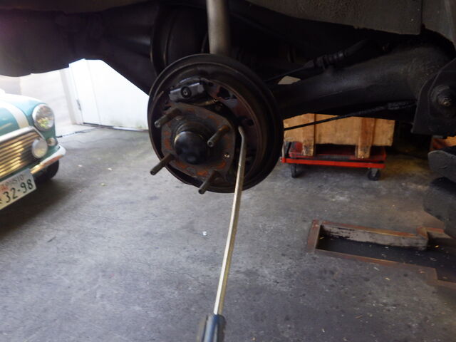 ブレーキペダルの上部のクレビスピン付近を洗浄して給油しました。