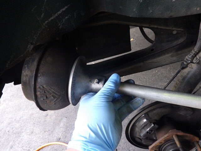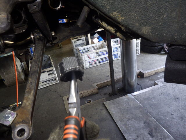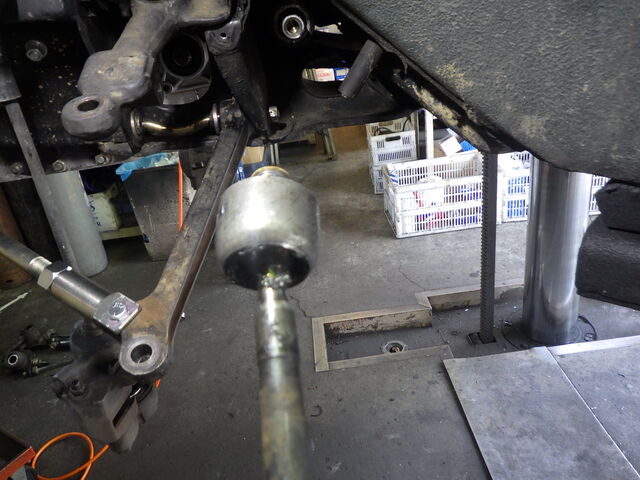 サブフレームを下げてタワーマウントブッシュを挿入します。