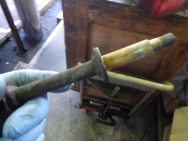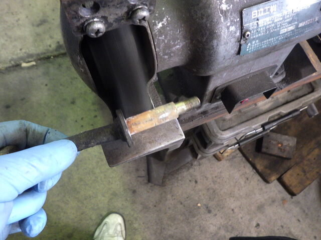ロワアームシャフトは錆びていたのでワイヤーホイールで磨きます。