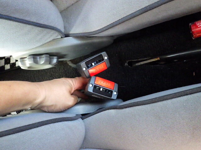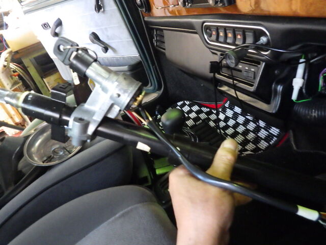 運転席側のフェース ベントとホースを外したところの左奥につまみの操作が出来るように