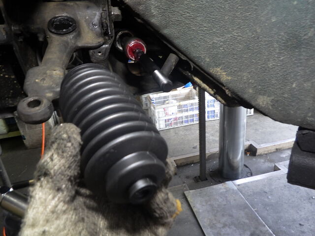 タイロッドのジョイントにグリスを塗りこんでブーツを取り付けます。