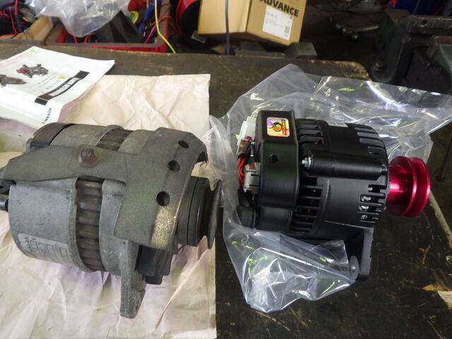 右側のオルタネーターはオプションとしてブラックオルタネーター+プラスチャージラインに交換