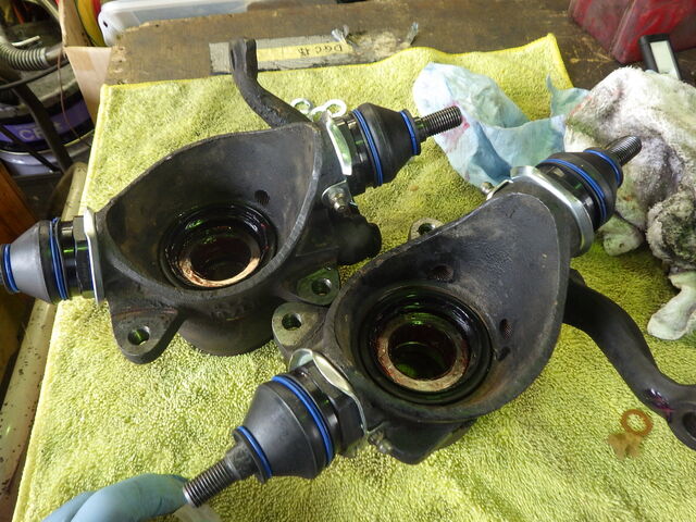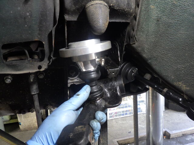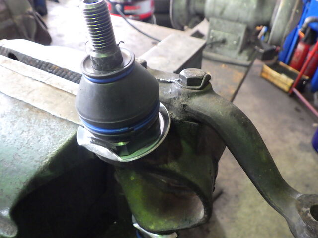 スイベルハブのアッパーとロワーのボールジョイントを交換します。