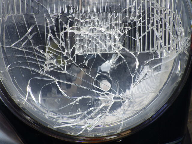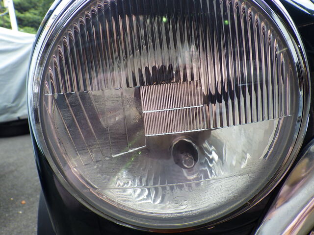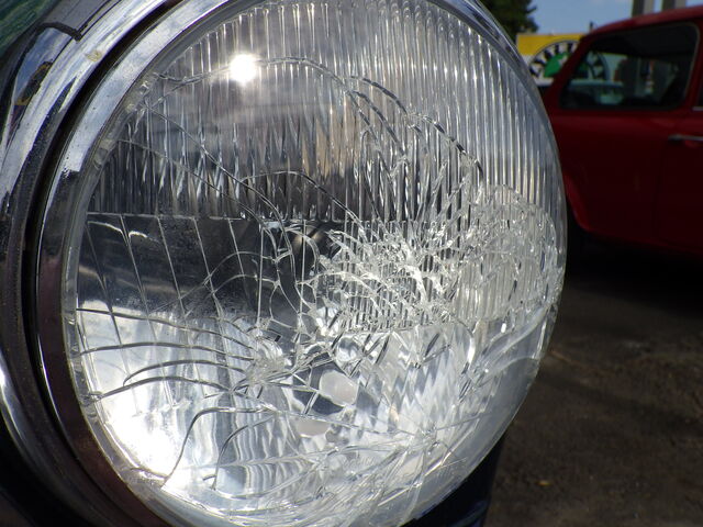 飛び石?なのか原因は不明ですが、左のヘッドライトが割れて