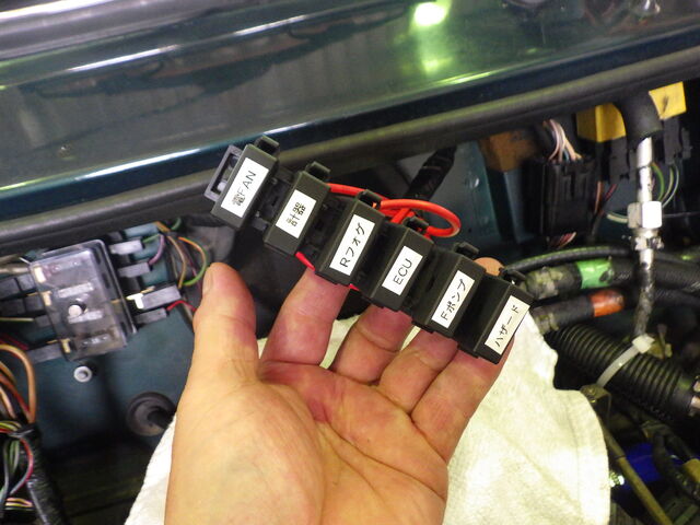 ヒューズは標準のガラス管タイプなのでブレードヒューズに交換します