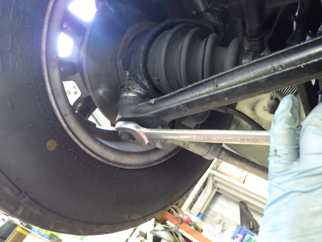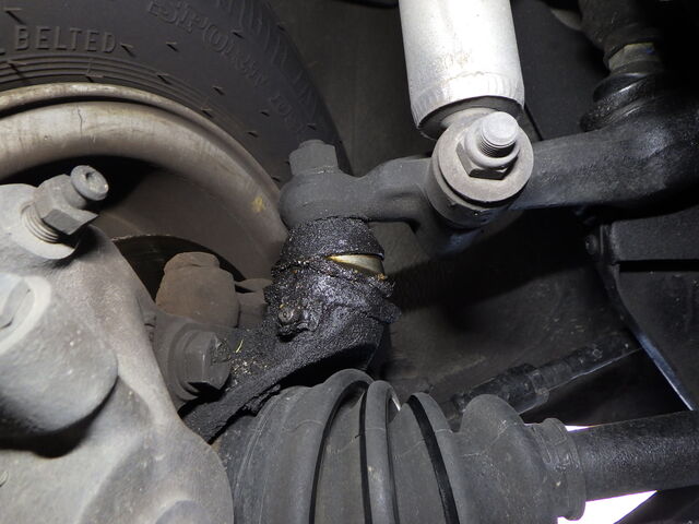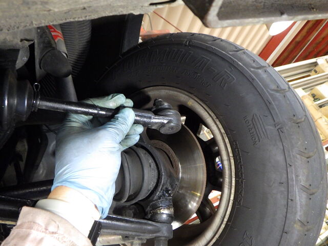 右のタイロッドエンドに小さなガタあります。