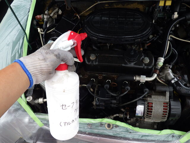 アルカリ性の洗浄剤セーフティークリーンを振りかけていきます。