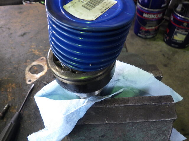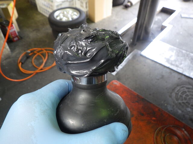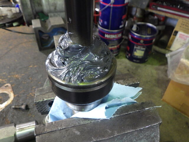 シャフトを挿入して更にグリスを盛り、ブーツを被せます。
