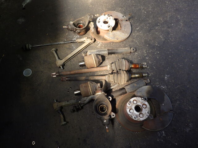 フロントの足回りやドライブシャフトを外しました。