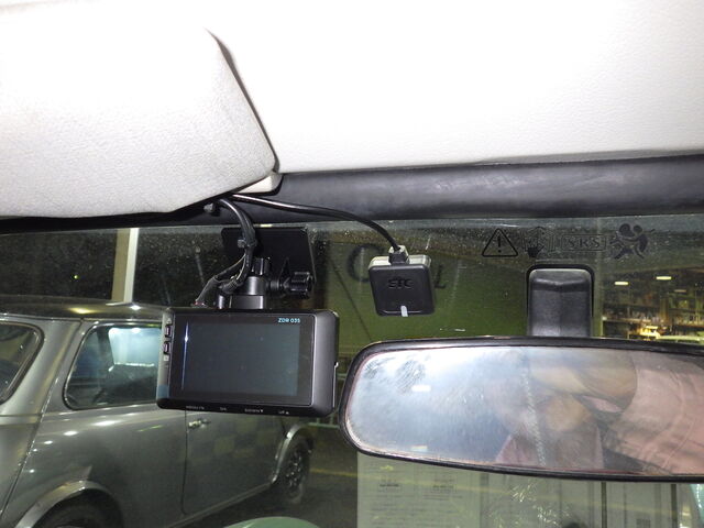 ドラレコとETCのアンテナは、ルームミラーの左側に付いてます。
