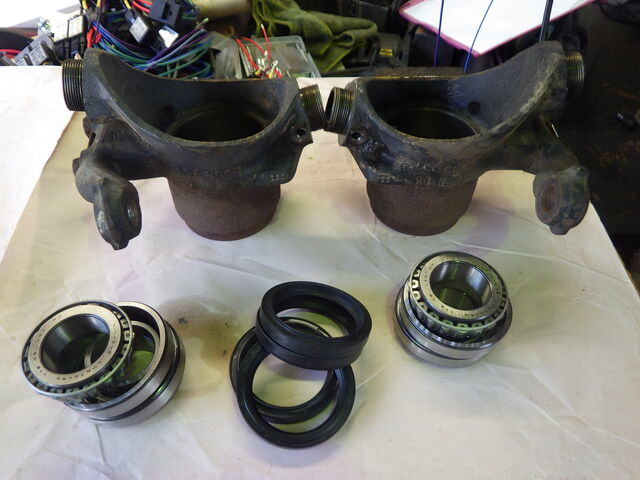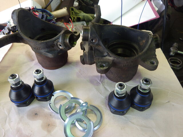ベアリングとボールジョイントをを外したスイベルハブを洗浄します。