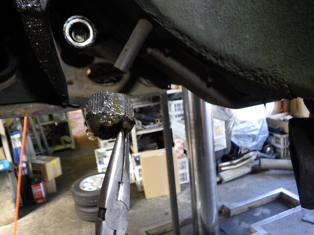 ホールプラグを外して接合面に液状ガスケットを塗ります。
